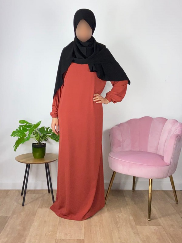 Abaya Manches élastiques - Brique 185 - Wool peach - El Bassira