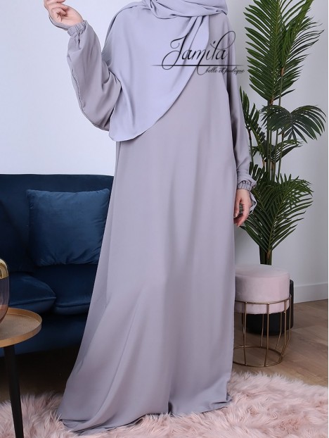 Abaya Simple Gris 295 - tissu microfibre - Jamila