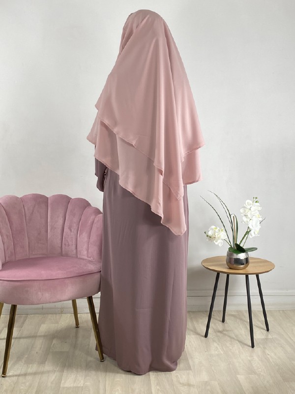 Khimar 2 voiles Rose - Soie de médine