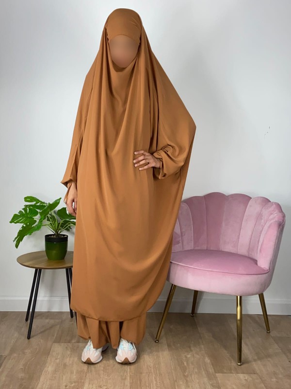 Jilbab 2 pièces sarouel Wool peach - Camel 152 - El Bassira