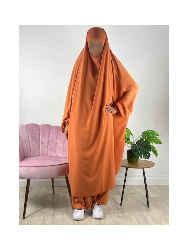 Jilbab 2 pièces sarouel Wool peach - Ambre 154/156 - El Bassira